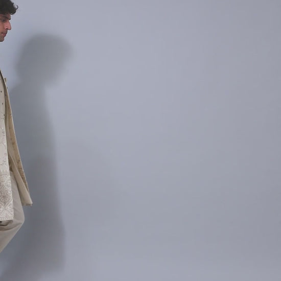 This indo-western one in raw silk is gleaming with resham, zari and embroidery embellishments in cream color. The mandarin collar is crowned by the indo-western, and full sleeve that is a mixture of art and color. This outfit is accompanied by pant and can be put on during engagement brilliance and vibrancy appeal, which is most appropriate when attending the festival or during traditional gatherings, or wedding.