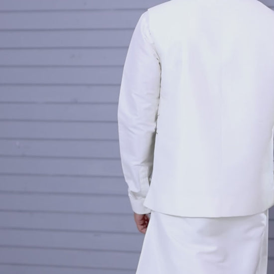 Elevate Off-white Men's Kurta Jacket Set with Raw Silk Finish