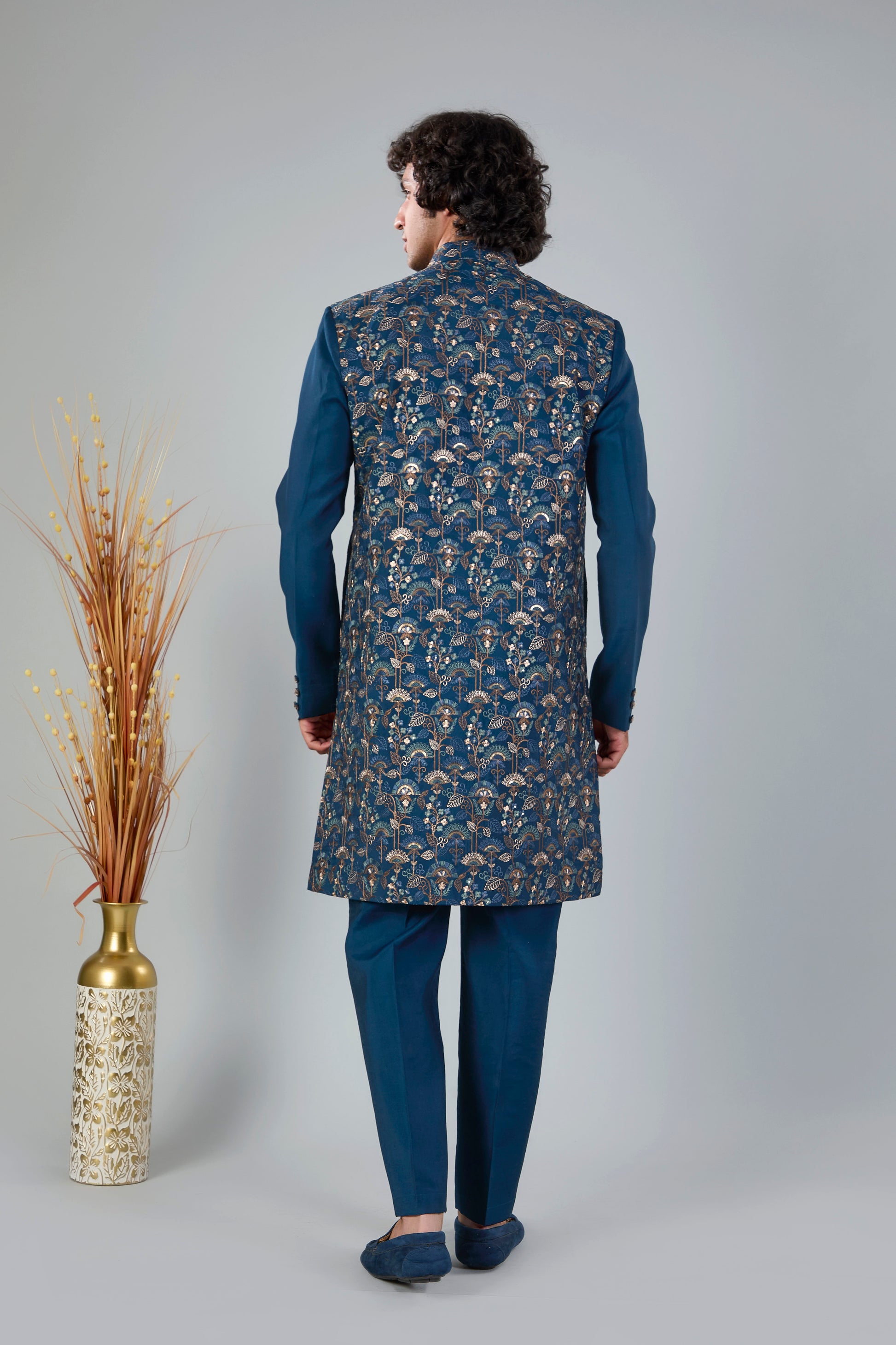 Teal Blue Men's Indo-western made in Raw Silk for Festive Style