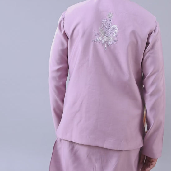 Soft and striking in this pastel pink raw silk kurta jacket system, where resham, zari, mirror and embroidery accents in the air, bring subtlety and party vibe. The sleeveless kurta jacket which is combined with the mandarin collar and full sleeve kurta characterize the easy luxury. Wears with pant which makes it look more festive look and engagement party times.